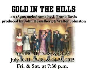 p.m. Online Audition Information Form List of characters Fun for the whole family. Sing the old songs! Cheer the hero! Boo the villain! Presented yearly since 1936, Gold in the Hills features a relentless hero, a winsome heroine, a ruthless villain, beautiful can-can dancers, and the wilder side of city life in the infamous New York Bowery. Gold in the Hills, the Guinness Book of World Records' longest-running show, is having another exciting season in the spring and summer, with performances Friday and Saturday nights starting at 7:30 pm. We offer open seating with no reservations required. Tickets are available at the Box Office the day of the show, and at The Cricket Box and Paper Plus. Click here for more information about ticket prices.