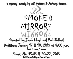 & Sunday, January 17 & 18, 2015 at 4:00 p.m. Buffet Reception opening night. Hollywood meets the Mississippi Gulf coast. In a “Survivor-like” environment in Governor Robert Tubbman's beach house on a private island seven miles off the Mississippi Gulf coast, a producer-director, screenwriter, publicist (who happens to be the producer-director's wife and screenwriter's former lover), and egomaniacal star actor form alliances to plot against each other, to the bewilderment of the local sheriff. Nothing is as it seems in this comedy-mystery, co-written by As the World Turns soap-opera star and Ole Miss graduate Anthony Herrera, who was born in Wiggins, Mississippi.