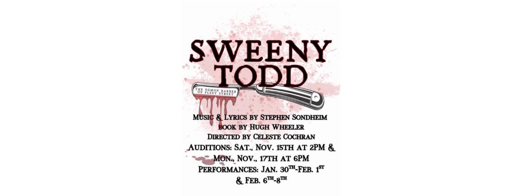 An infamous tale, Sweeney Todd, an unjustly exiled barber, returns to nineteenth century London seeking vengeance against the lecherous judge who framed him and ravaged his young wife. The road to revenge leads Todd to Mrs. Lovett, a resourceful proprietress of a failing pie shop, above which he opens a new barber practice. Mrs. Lovett’s luck sharply shifts when Todd’s thirst for blood inspires the integration of an ingredient into her meat pies that has the people of London lining up… and the carnage has only just begun!