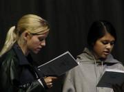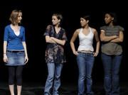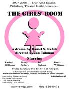 includes dialog about date rape among teens. Congratulations to Haley Sellers for being selected to the all-star cast in the Community Theatre Division for her performance in The Girls' Room at the Mississippi Theatre Festival. This powerful drama takes on the subject of date rape. Four girls meet throughout the school year in the girls bathroom, in the mornings when it is off-limits to students. It's their secret refuge where they share stories, tease and argue with each other, but above all, support one another. When one of the girls, a freshman, reveals the name of the guy she is seeing, her sister, a senior, is horrified as he is the boy who raped her in eighth grade. By the end of the school year, they have all grown, learned, and are ready to leave their refuge for good. This play deals with a difficult and provocative subject with sensitivity and humor. The cast of The Girls' Room sponsored a Yard Sale on January 19 as a fundraiser to help pay competition expenses. Cast: four females playing characters 13-19 years old; and one adult male (does not appear on stage). Technical Requirements: There are no sets. Costume changes should denote the change in seasons between scenes. Each character carries a backpack with books, makeup, and accessories. Joanie also carries a key on a chain around her neck. In the last scene Cathy carries a blanket, a lighter, and four cupcakes with small birthday candles. Lighting is simple and kept to the center third of the stage. For the scenes in the dark, a slotted gobo on a light offstage right is suggested to create the illusion of a pattern of sunlight streaking through a window and on to the stage floor. Approximate Running Time: 45-50 minutes click on photo to view more photos